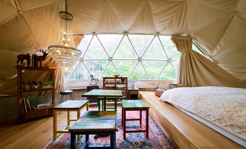 | 宿泊タイプ | 直径7mドーム型テント(全2棟/room 555のみペット同伴可) |
