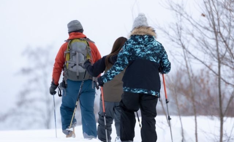 冬の訪れとともに始まるのが、ふかふかの雪を踏みしめながら森を歩くスノーシュー体験。一歩進むたびに雪がきゅっと鳴り、白銀の景色がどこまでも続く富良野ならではの冬のアクティビティです。散策を終えるころには頬がひんやりと冷え、全身で冬の大自然を味わった心地よい疲れが広がります。