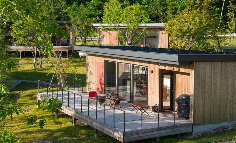 「SAUNA&VILLA 焚火(takibi)」は、羊蹄山を望む真狩村に佇む、全棟プライベートサウナ付きのコンテナ型ヴィラ。